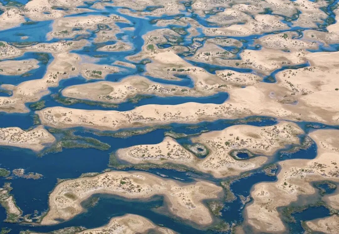 一眼万年的“沙漠千岛”深藏于内蒙古鄂尔多斯的奇迹之地,当浑浊的黄河水涌入库布齐沙漠,泥沙沉淀为清澈的湖底,化作千颗蓝色宝石散落金色瀚海,湖光沙色交融 形成“沙漠千岛”的奇观,巴彦淖尔的小众景点 满足飞手的创作灵感。