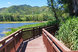 雁栖湖西山栈道是一条依山而建的观景步道。沿途设有多处观景平台,可360度俯瞰雁栖湖全景,远眺APEC会址建筑群和连绵群山。步道采用木质栈道与石阶相结合的设计,坡度平缓,适合各年龄段游客休闲徒步。
