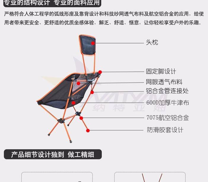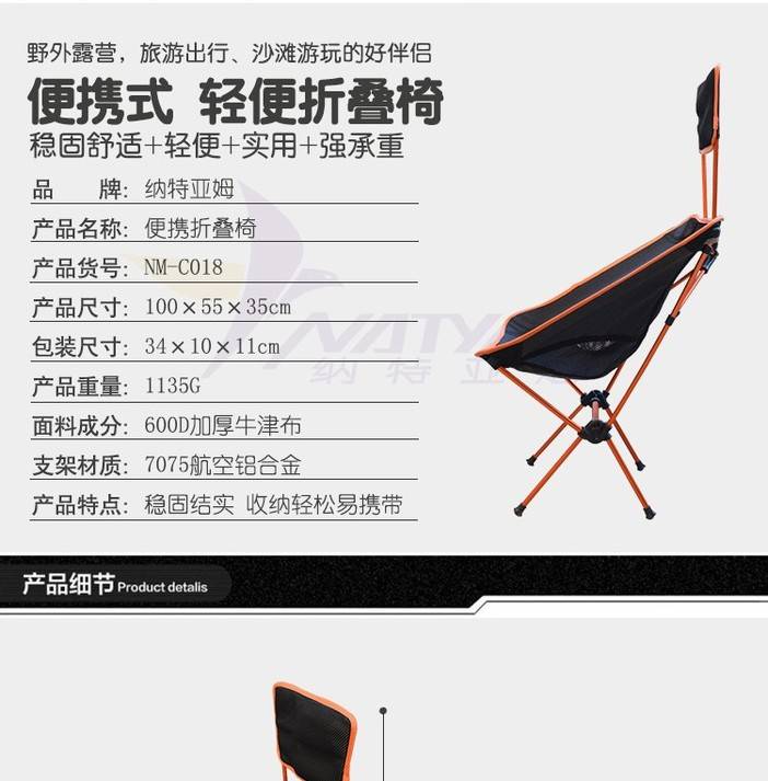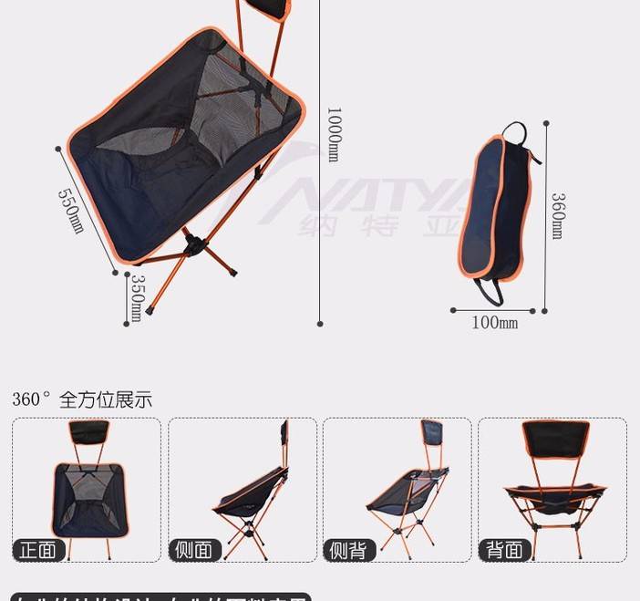 纳特亚姆7075铝合金折叠椅子 舒适透气钓鱼椅 户外野营凳 带收纳包